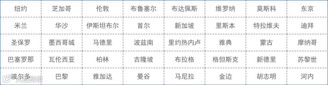 东南亚、中东、南美、中亚,其他“一带一路”核心国家的首都或中心城市。