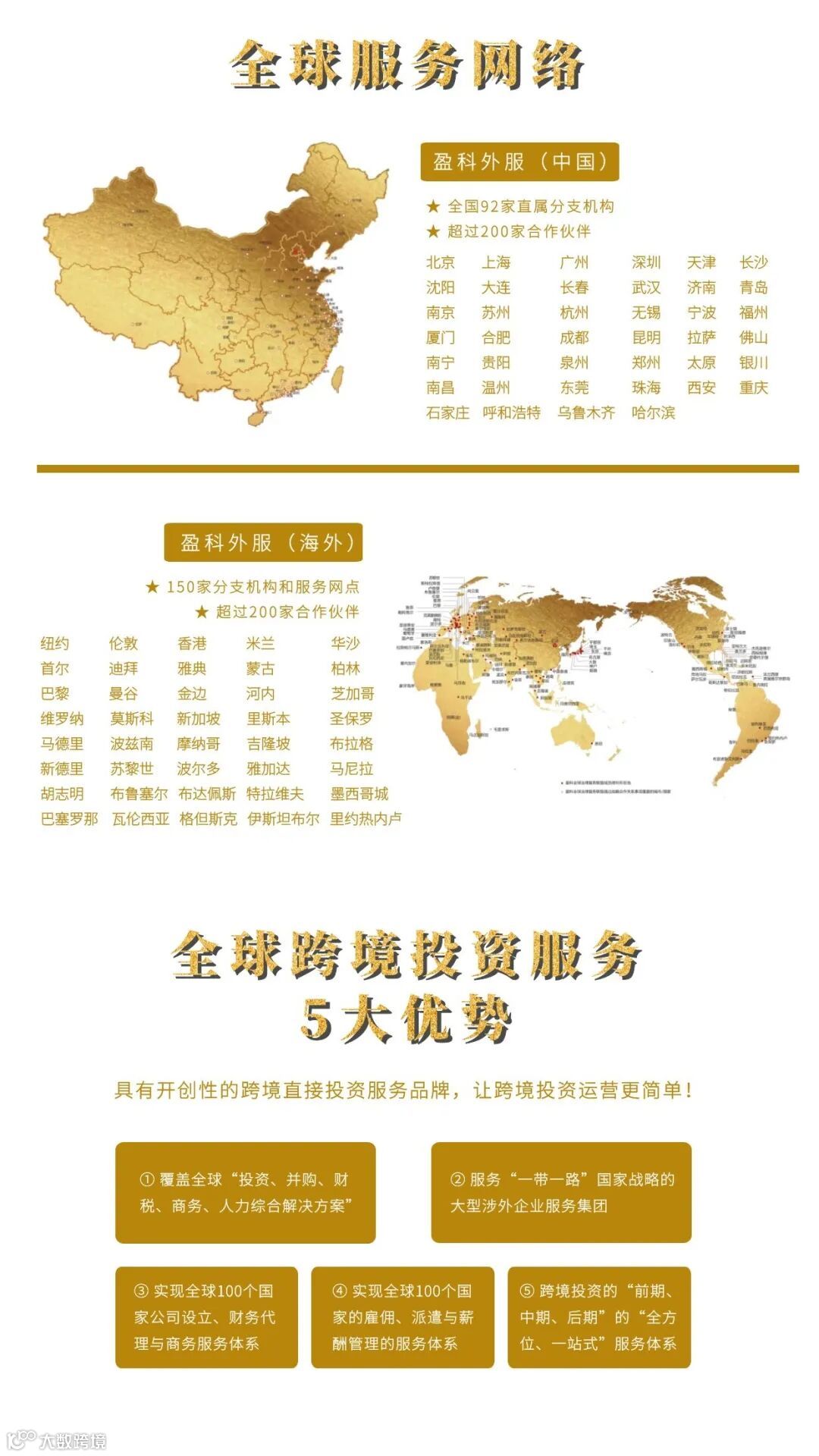 依托盈科全球体系的优质资源和广阔平台,盈科外服为企业跨境投资经营提供“投资咨询、调研评估、市场准入、公司设立、资金出境、投资架构、全球派遣、薪酬外包、跨境财税、离岸操作”等全方位、一站式服务。