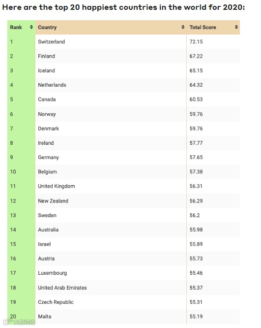 日前,《CEOWORLD》杂志公布最新全球最幸福快乐国家指数