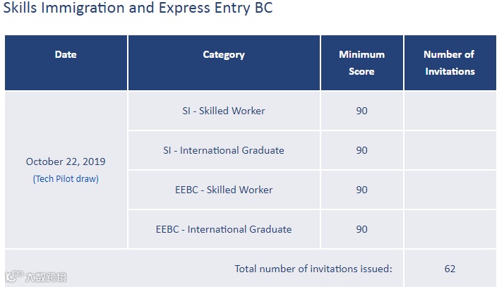 导读:加拿大当地时间2019年10月22日,BC省移民局公布新一轮技术移民 (仅针对29个特快审批职业) 抽选结果