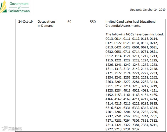 加拿大当地时间2019年10月24日,萨省技术移民无雇主类别进行了第22轮EOI抽选:
