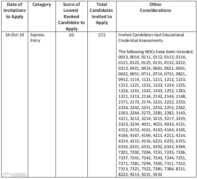 紧缺职位OID类别共发出550份邀请,最低分数69分;EE类别共发出372份邀请,最低分数69分。