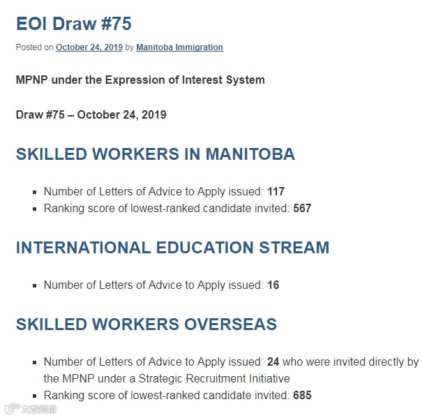 同一天,曼省移民局公布了第75轮EOI抽选结果: