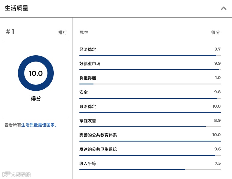 通过报告我们可以看到,加拿大的多项指标排名都非常靠前,生活质量全球排名第一,公民身份全球排名第二,投资经营全球排名第七。