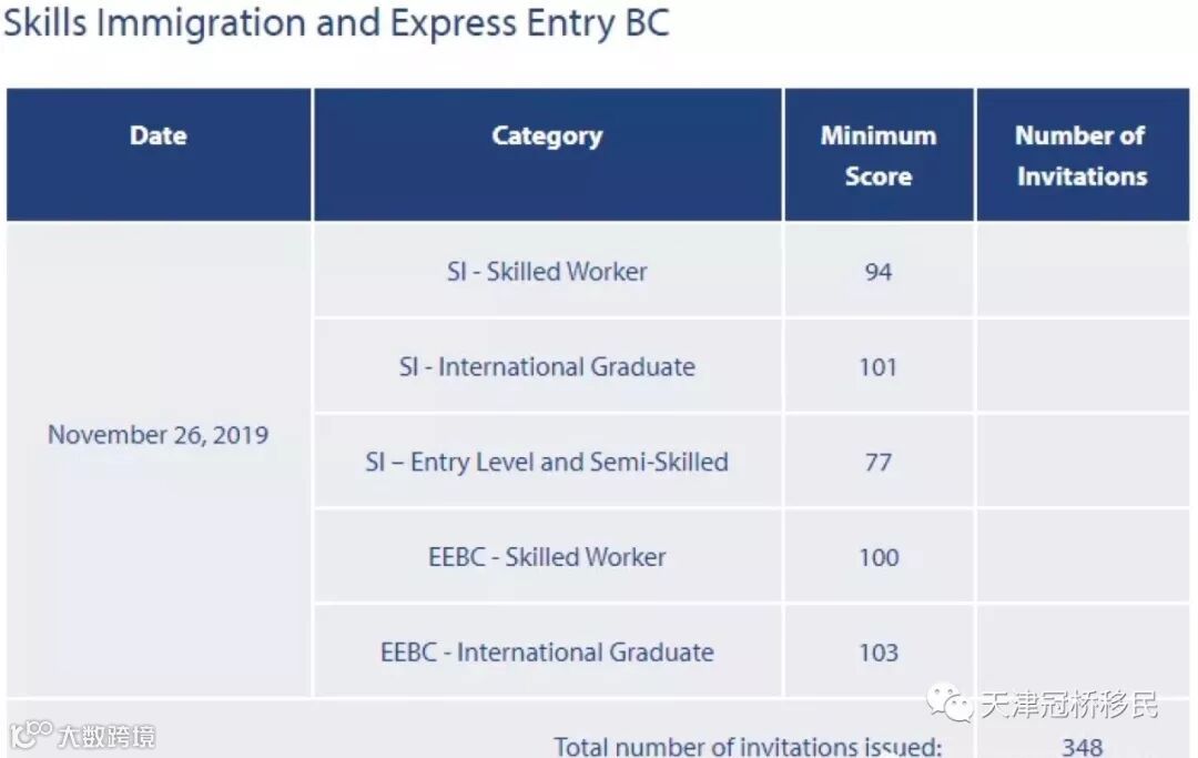 导读:加拿大当地时间2019年11月26日,BC省移民局公布新一轮移民抽选结果:本轮抽选共计发出348份邀请。具体