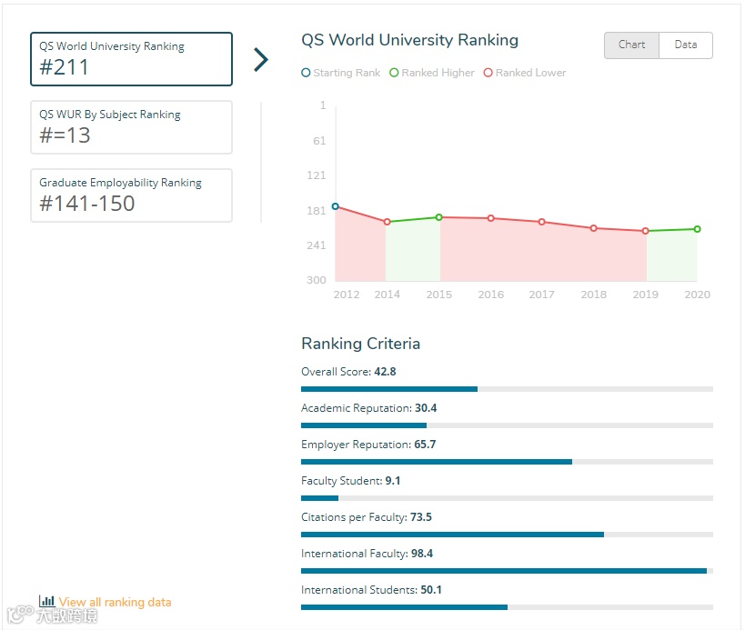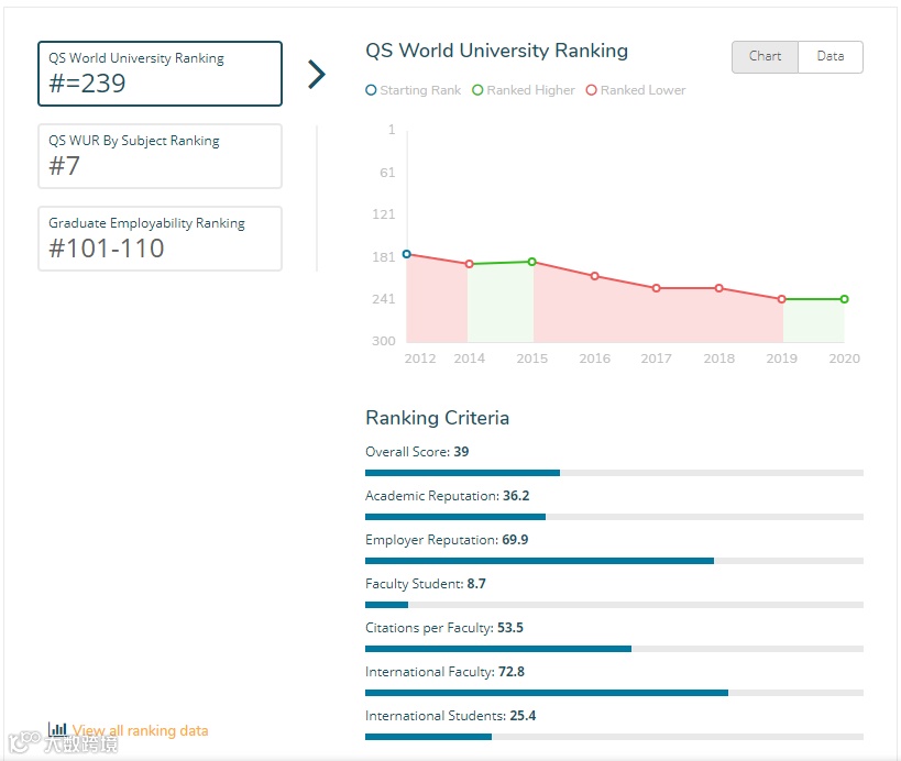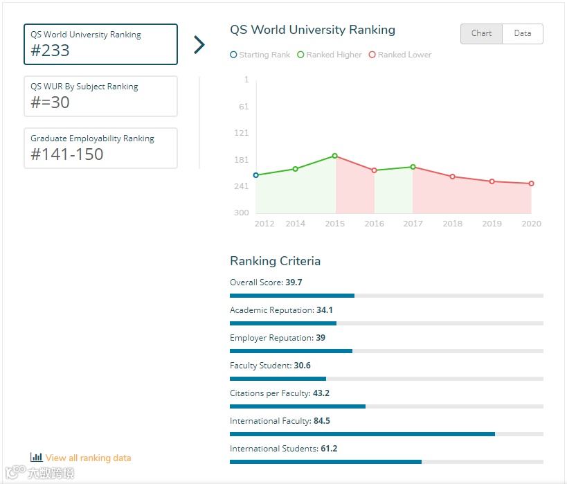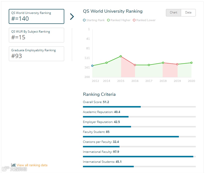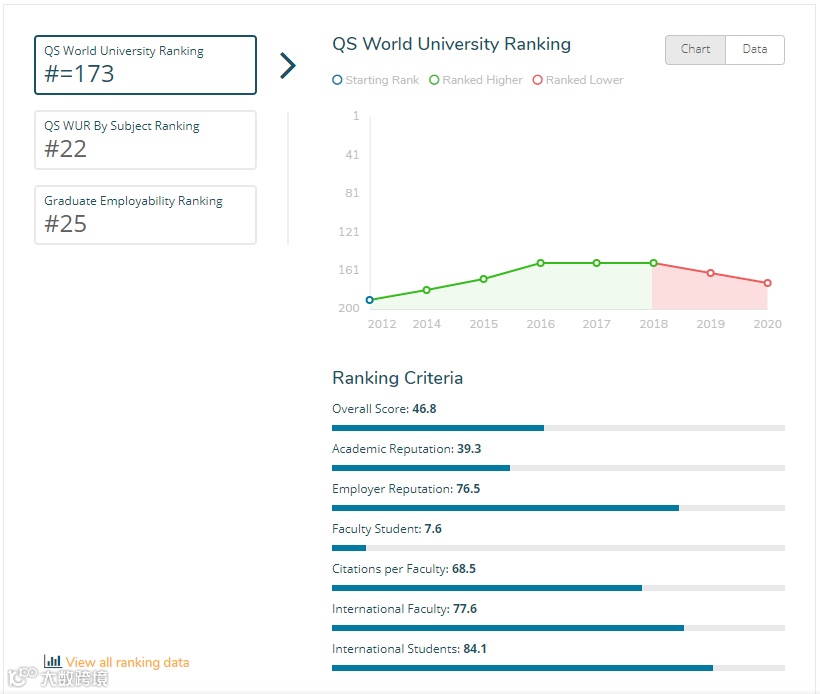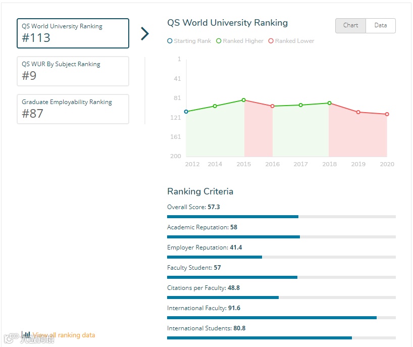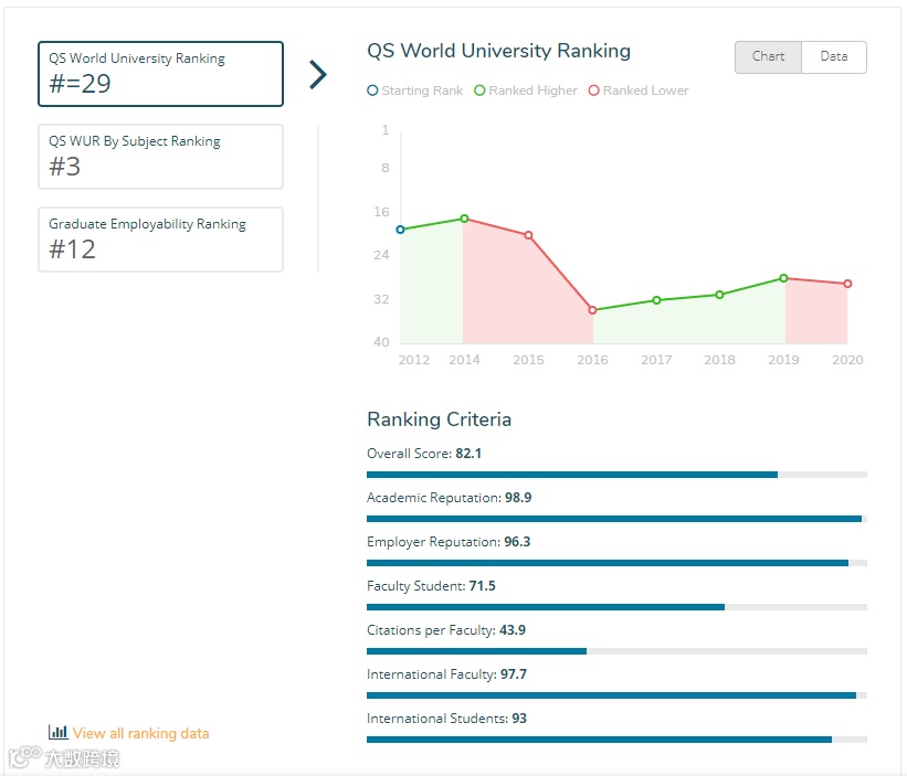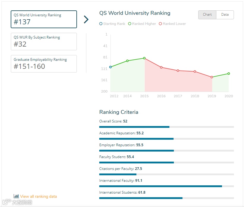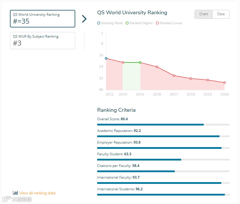 考察学校的就业水平。雇主声誉的数据来源于QS对44,0000多位雇主的调查,反映的是毕业生就业能力。