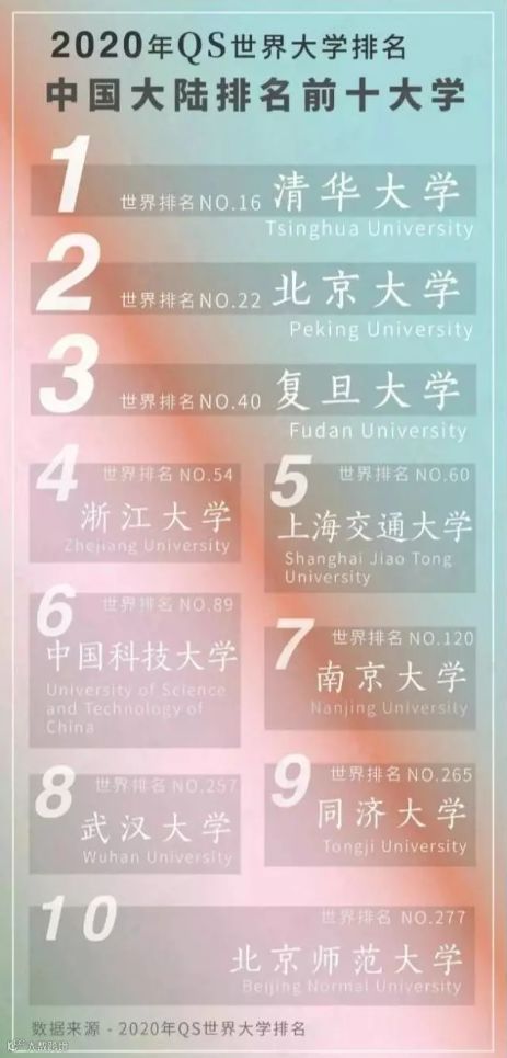 6月18日,全球高等教育研究机构QS 发布了2020年度QS世界大学排名,共包含了来自全球85个国家和地区的1000所大学。