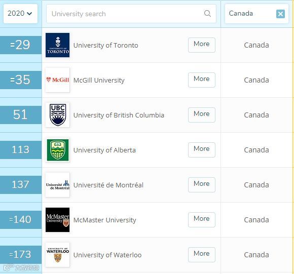 根据这份排名,加拿大共7所高校进入本次世界大学排行榜的200强。