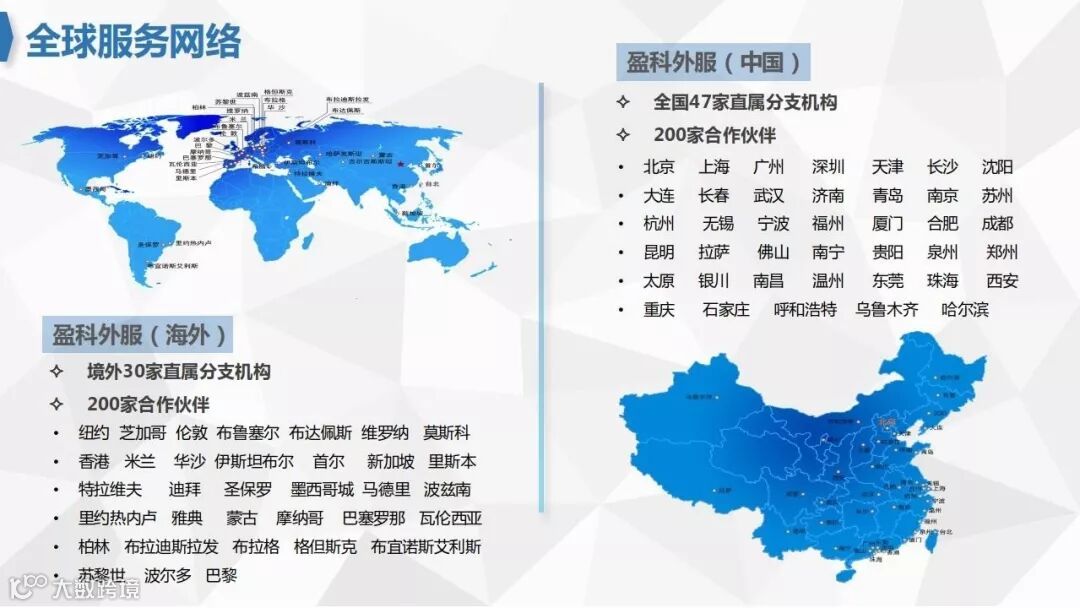 盈科外服总部位于上海,在中国59个主要城市拥有分支机构,在全球包括美国、英国、德国、法国、迪拜、新加坡、香港、印度、泰国、印尼、越南等世界各地拥有超过150个分支机构与服务网点。盈科外服的客户不仅包括行业巨头、跨国公司,还包括中小企业、政府机构以及各类商协会。覆盖全球的服务网络,极为广泛的中外客户资源,及高度国际化的专业团队,使得盈科外服在跨国直接投资服务领域拥有明显优势。
