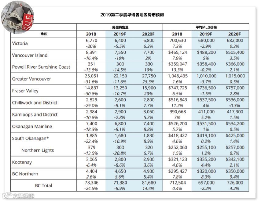 地产协会认为,2019年是一个过渡阶段,卑诗省的房屋销量和房价与2018年比都会下降,但2020年就会强势回升。
