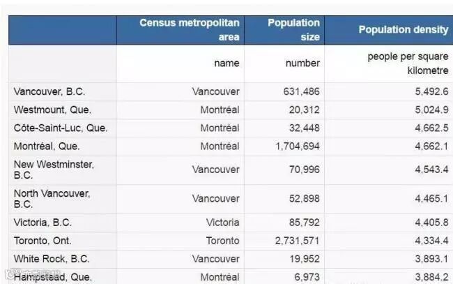 此外,温哥华市的人口密度是全加拿大城市中排名最高的