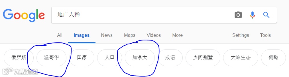 谷歌输入:地广人稀四个字