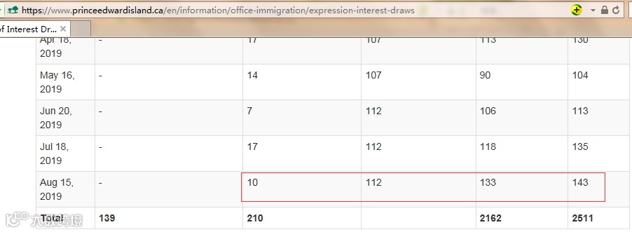 2019年8月15日, PEI移民局公布2019年第8轮EOI抽选结果: