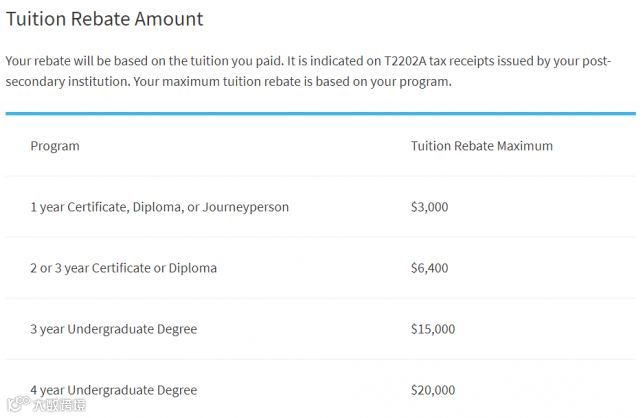 4年本科生可以获得最高$20000抵税额,3年本科生可以获得$15000,2年文凭项目的可以获得$6400,1年的则可以获得$3000。