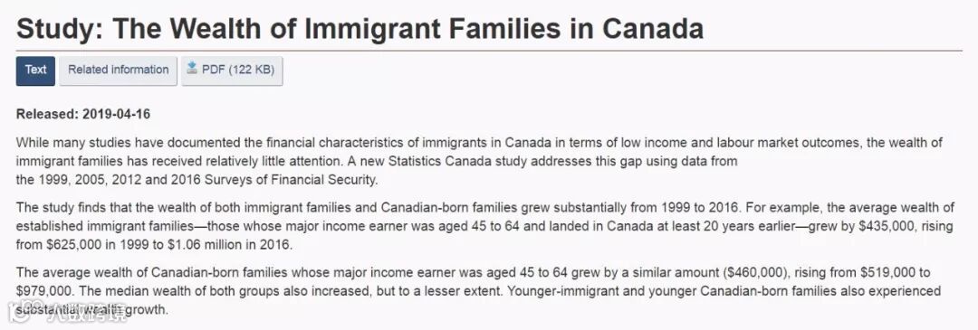 最近,加拿大统计局发布了一份报告。报告说,过去20年的数据证明,加拿大移民家庭的平均资产比本地家庭要更多更富有!移民来加拿大年份越久资产越高,老移民家庭的平均资产已经达到了$106万!