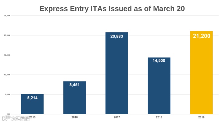 IRCC现在通过快速通道系统在2019年共发出了21,200份邀请,比2018年同一时间发布的邀请数量多了6,700个。