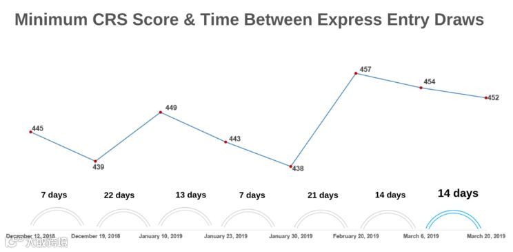 在过去的两轮抽选中,CRS分数已经有所下降,这可能是因为IRCC控制了两次抽选间隔。