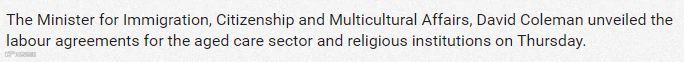 SBS详细分析了两种全新签证,主要针对老年护理和宗教机构这两种。