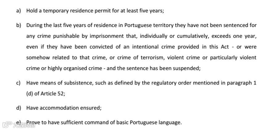 持有葡萄牙合法居住身份满5年;