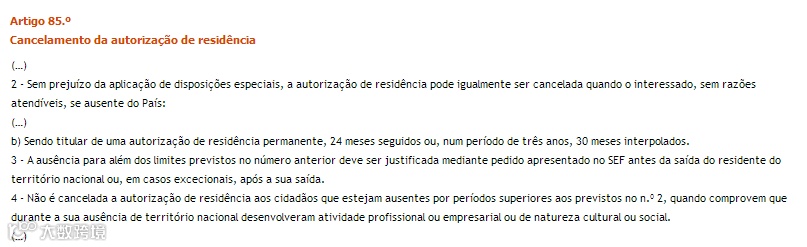 不得连续离开葡萄牙超过24个月;