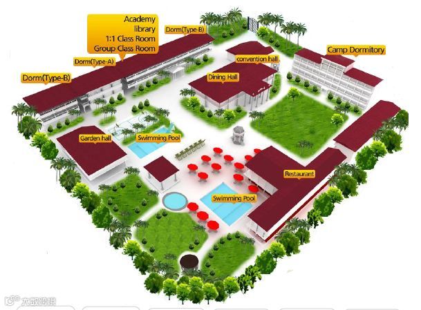 3、 一体型大学校区:集学校, 住宿, 食堂, 游泳场(免费) 于一体