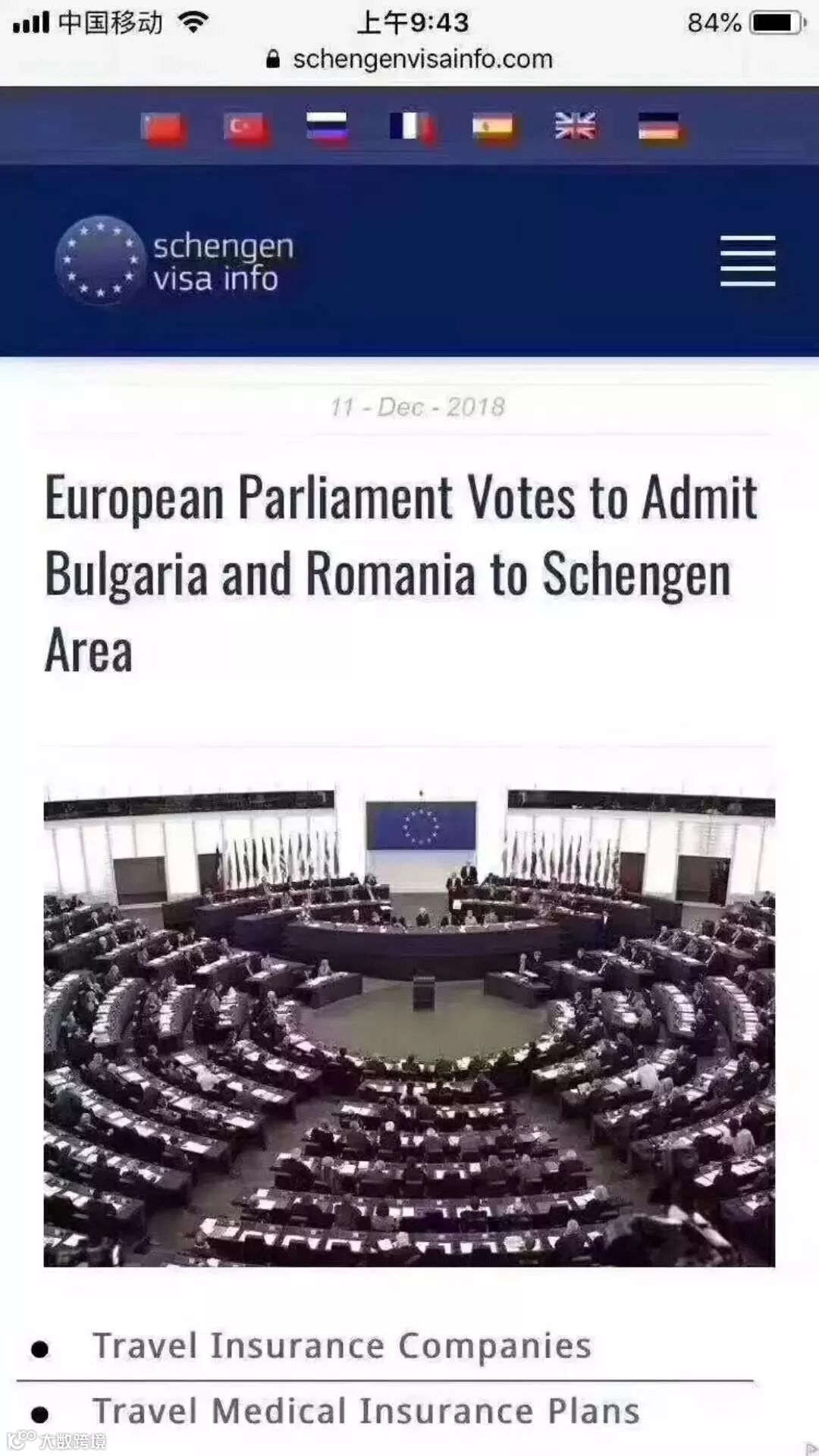 欧洲议会(EP)于12月11日通过了非立法报告,支持罗马尼亚和保加利亚成为申根地区的正式成员,并要求欧洲理事会 (EC) 尽快立法通过这两个国家的加入,26个申根国或将变28个申根国!