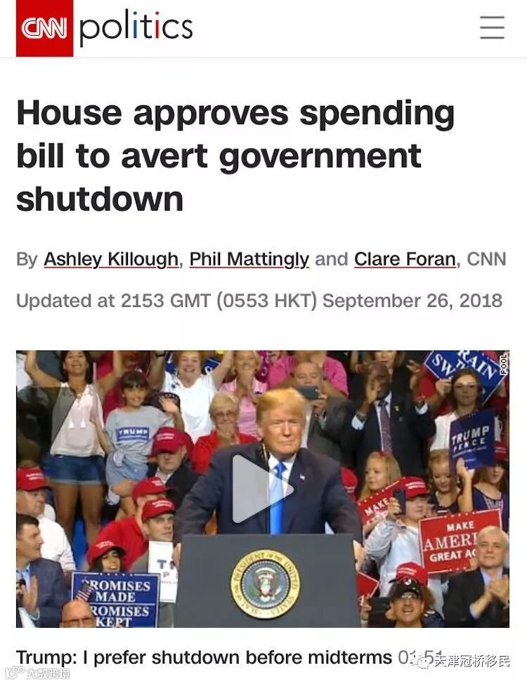 9月30日,周日午夜之前,川普必须签署该法案,才能避免联邦政府停摆;