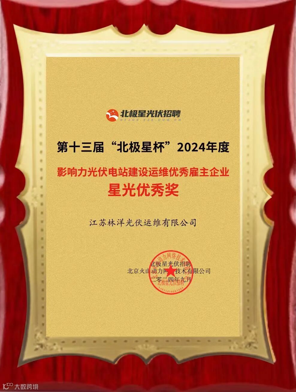 2024年9月5日,第十三届“北极星杯”光伏影响力品牌评选颁奖典礼在江苏南京完美落幕!现场一百多家企业荣获奖项,近300位嘉宾见证分享这一荣耀时刻。