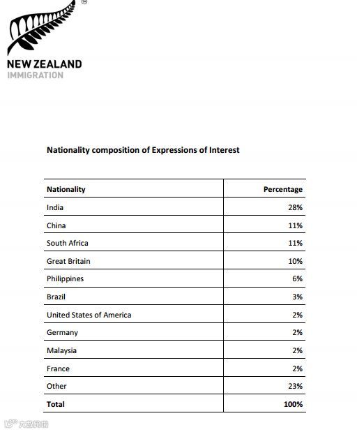 EOI递交国家排名中,中国占比是11%,依然名列第二。中国仍然是新西兰技术申请的主要来源国。