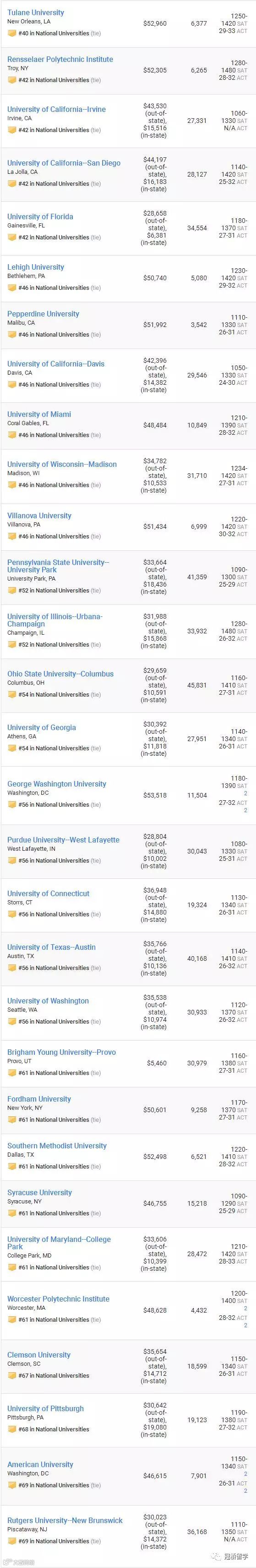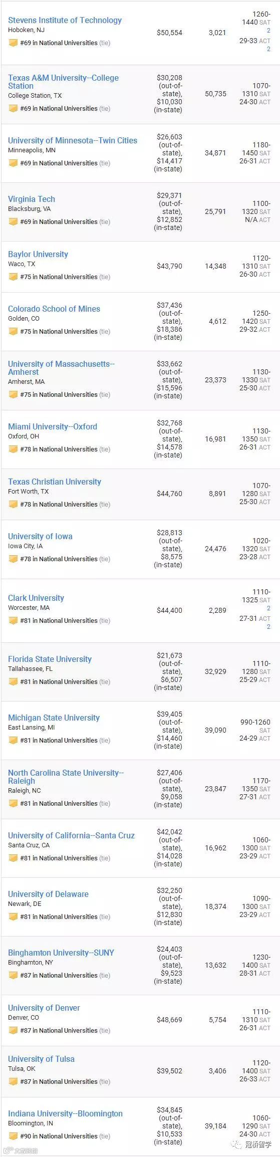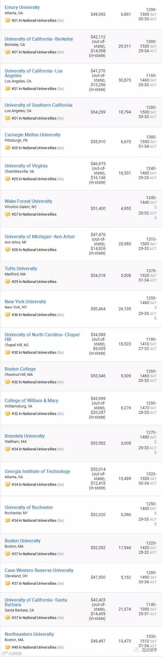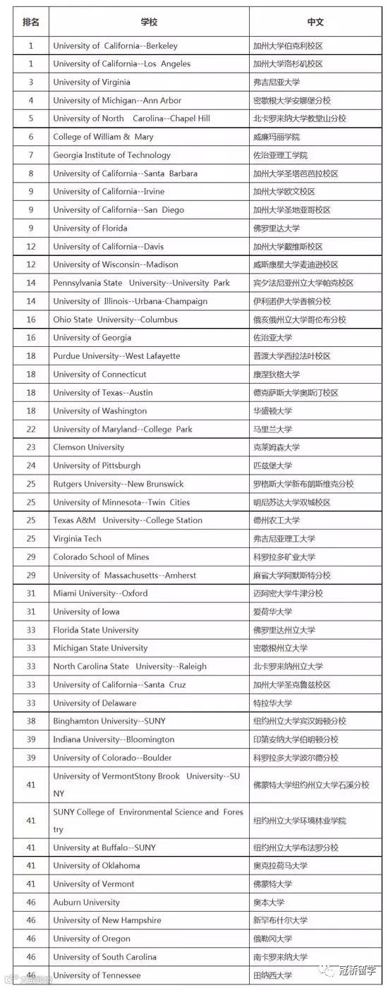 继而US News 还发布了2018美国顶尖公立大学排名。从小型文科学院,到大型研究机构,这份榜单涵盖了所有的公立学校。下图为2018美国顶尖公立大学排名榜的前50名榜单。