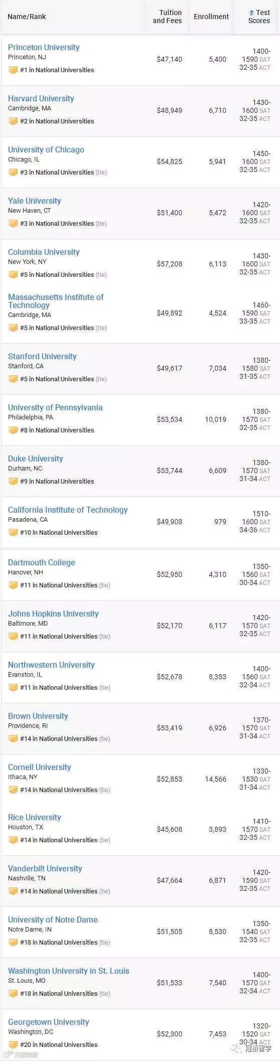 本次USNews也是看点满满。在本次排名中,全美前6大学排名与去年相比变化不大,这6所大学依旧保持了去年的排名,为普林斯顿(第一)、哈佛第 (二)、芝加哥(第三)、耶鲁(第三)、哥伦比亚(第五)、斯坦福(第五),而麻省理工比去年前进了2名,与哥伦比亚与斯坦福并列第五。
