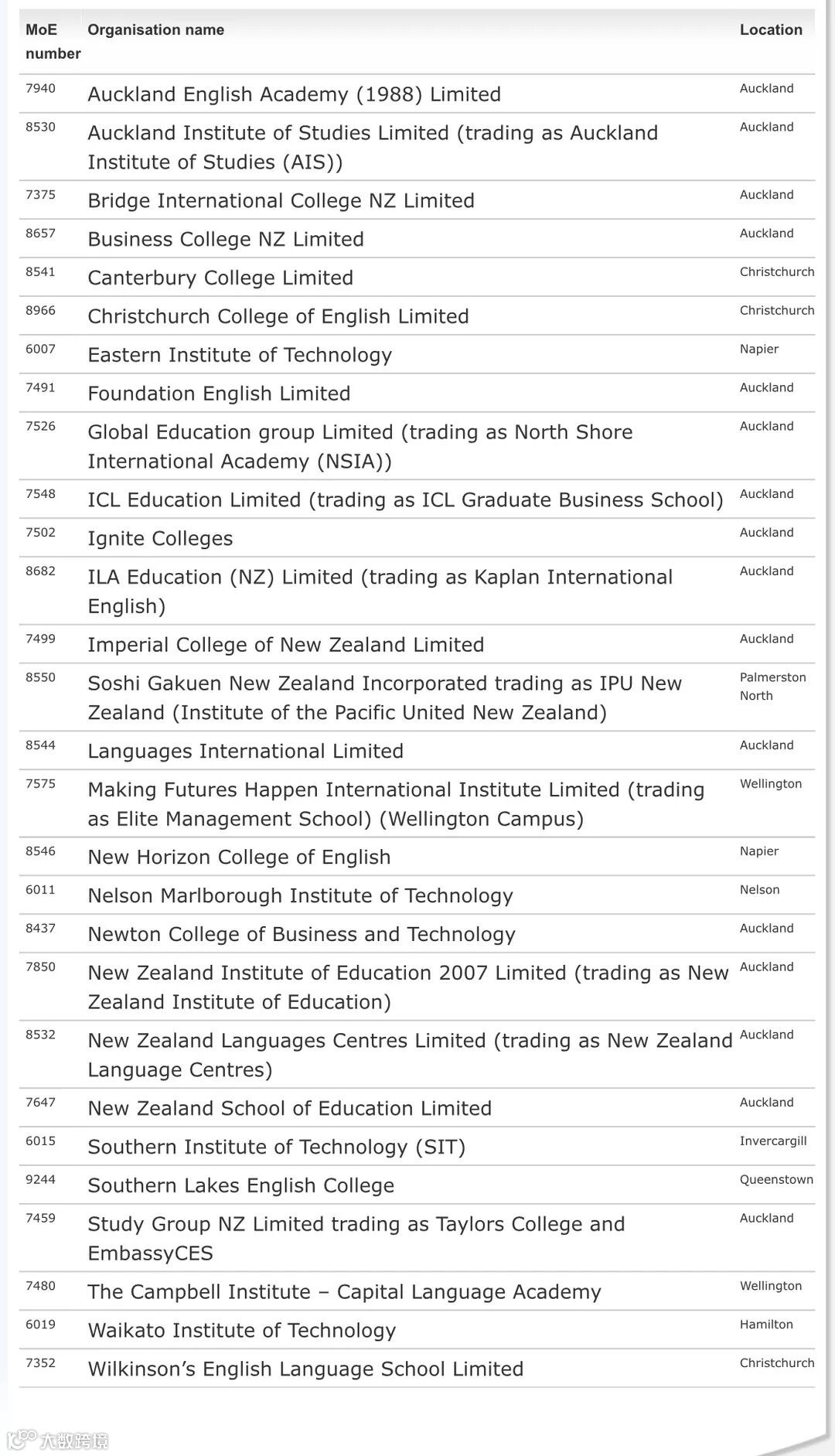 在NZQA公布的信息中,此次是针对新西兰非大学高等教育行业。
