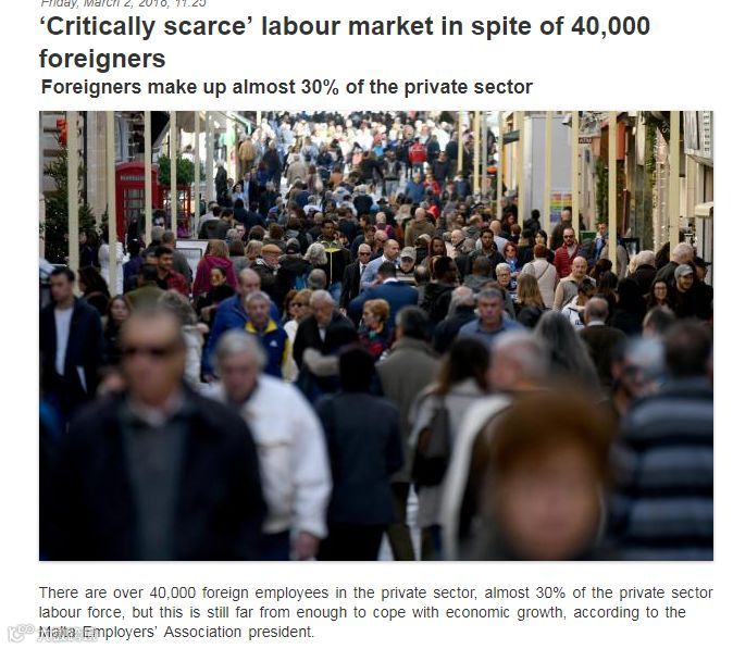 《马耳他今日报》报道的劳动力供不应求的新闻
