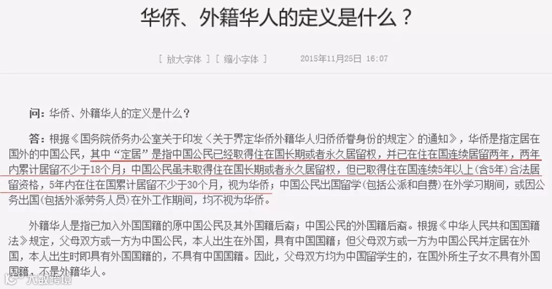中国国务院侨务办公室给出的关于在国外“定居”的解释是: