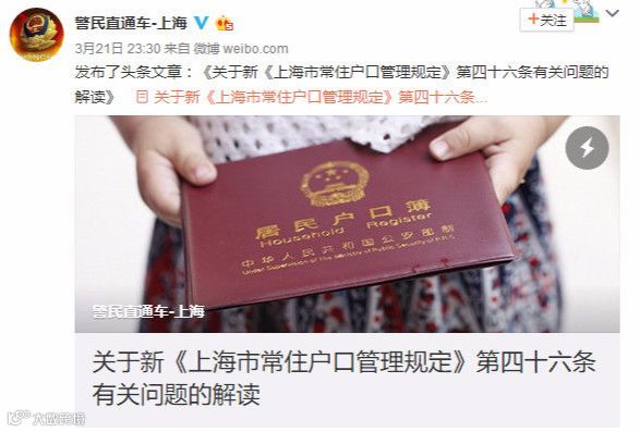 根据上海市公安局在官微上给出的解读,加入外国国籍的人员需要注销户口,而仅持有绿卡,并未在国外长期定居的人员,并不会被要求注销户口。