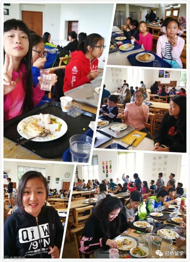 学校的中央餐厅餐饮部门制定了定期循环的菜单可提供学生选择健康均衡的菜饭。早餐有水果和果汁。午餐和晚餐有蔬菜、色拉和新鲜水果可供选择。