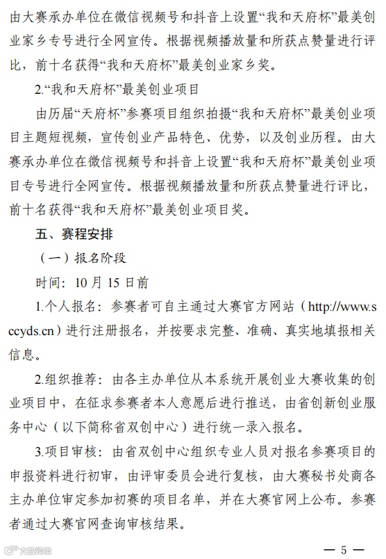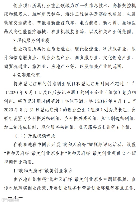 本届大赛在赛事进程中同步开展“我和天府杯”短视频评比活动,设置“我和天府杯”最美创业家乡和“我和天府杯”最美创业项目2个短视频评比项目。