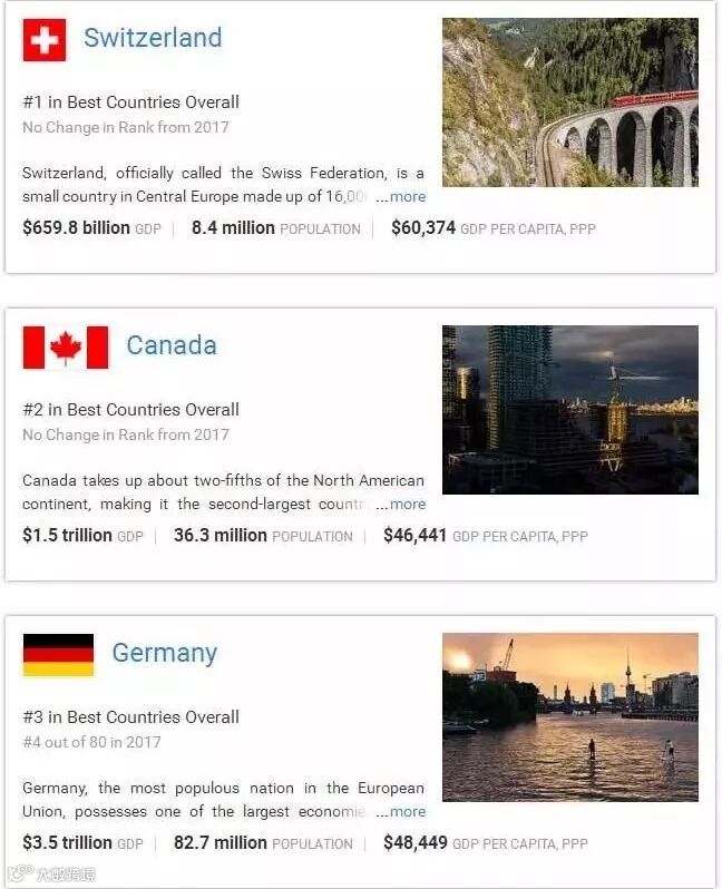 根据《美国新闻与世界报道》、Y&R BAV集团以及宾夕法尼亚大学沃顿商学院,在2018年年初联合推出了全球最佳国家(Best Countries 2018)综合排名。