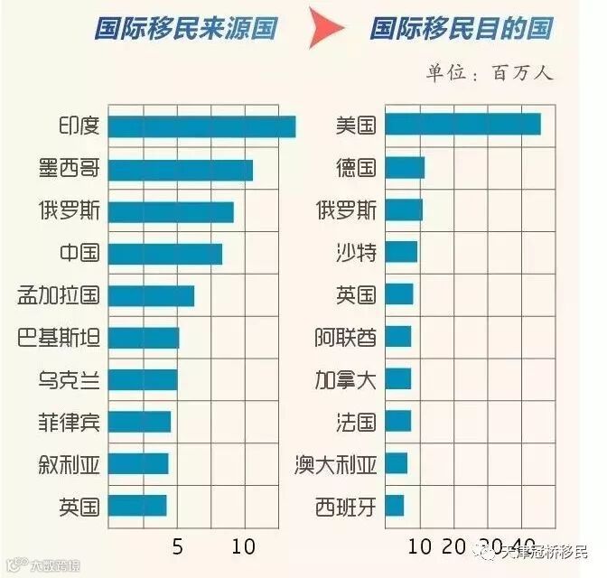 在亚洲,中国和印度是迁出移民数量最多的两个国家。2015年,中国移民成为继印度、墨西哥和俄罗斯之后的全球第四大移民团体,有接近1000万中国出生的移民生活在中国以外地区。值得一提的是,在这1000万中国移民中,生活在美国的有超过200万人!