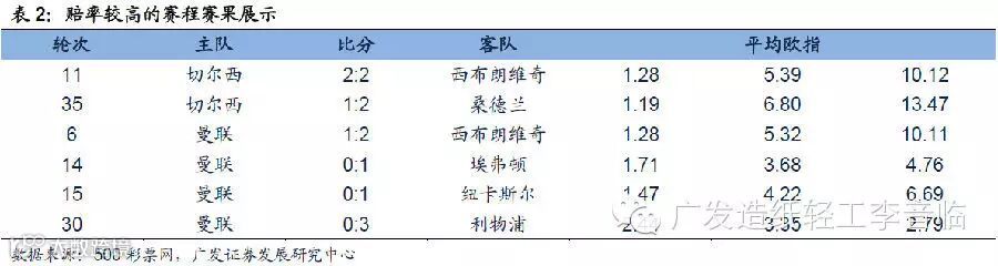 二、体育彩票:赛季英超赔率回顾