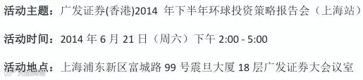 活动主题:广发证券(香港)2014 年下半年环球投资策略报告会(北京站)