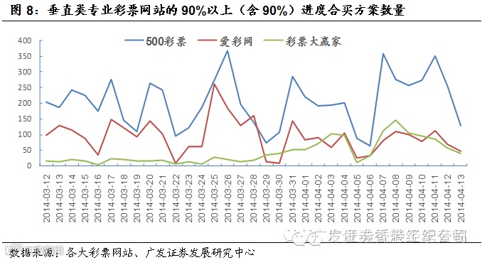 1、横向比较:不同网站进度达到90%(或以上)的合买方案的数量