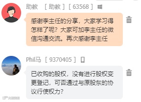 在线学习的企业家们纷纷表示此次课程受益匪浅,通过本次学习意识到股权结构设计对一个企业长期发展产生着重要的影响。