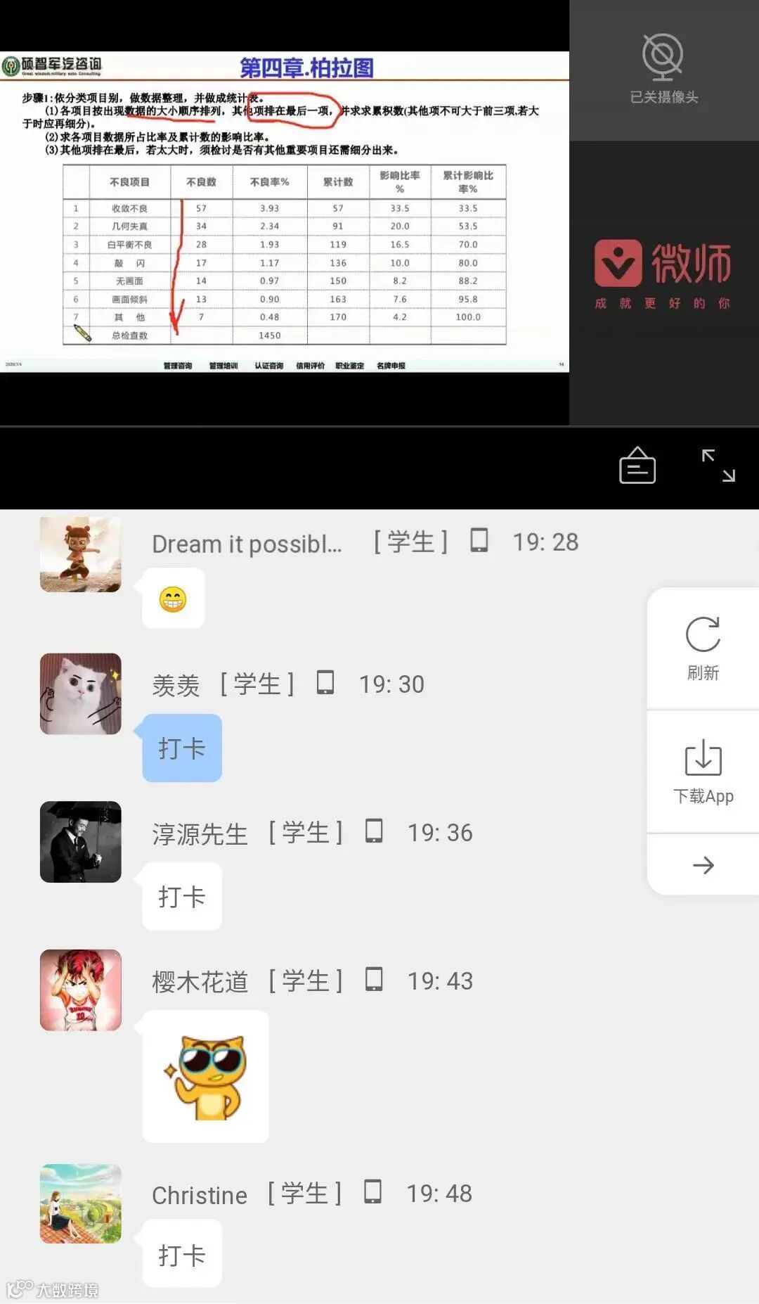活动中,资深实战咨询师、TUA莱茵二方审核员,高级企业培训师李义超就QC七大手法中的柏拉图与鱼骨图进行举例分享,引得不少好奇宝宝打卡学习。
