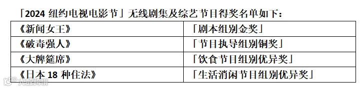 (2024年4月17日)电视广播有限公司(TVB)向来致力为本地及海外观众提供最高质量的电视娱乐,TVB作为领先全球的华语电视媒体,多年来备受世界各地的观众、客户及媒体所肯定。TVB今年于「2024纽约电视电影节」再接再厉,获得一个金奖、一个铜奖以及两个优异奖共四项殊荣。