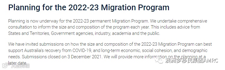 移民局已邀请提交关于 2022-23 年移民计划的规模和组成,从而如何最好地支持澳大利亚从 COVID-19 中恢复以及长期经济、社会凝聚力和人口需求的意见书。
