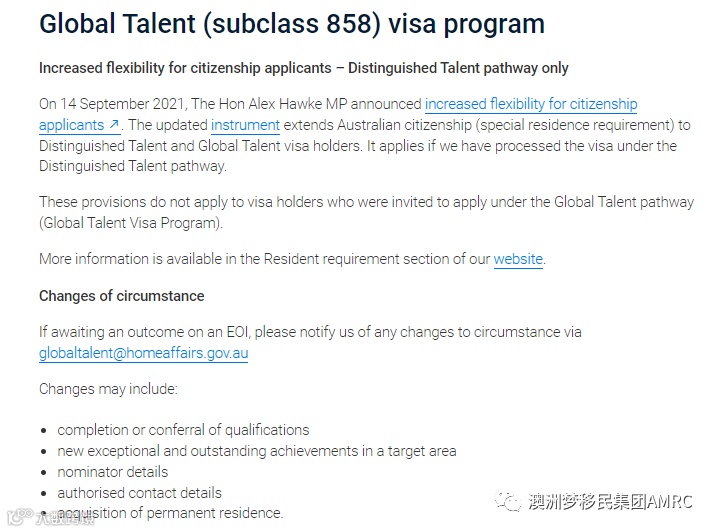 2021 年 9 月 14 日,议员亚历克斯·霍克 (Hon Alex Hawke) 宣布提高公民申请的灵活性。更新后的文书将澳大利亚公民身份(特殊居住要求)扩展到杰出人才和全球人才签证持有人。