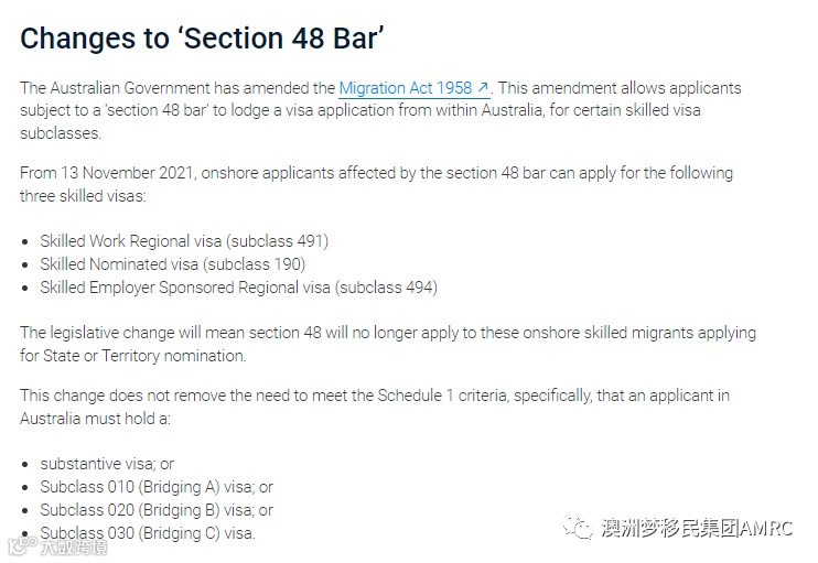 澳大利亚政府修订了1958年移民法,该修订允许受“第 48条限制”限制的申请人从澳大利亚境内针对某些技术签证子类提交签证申请。