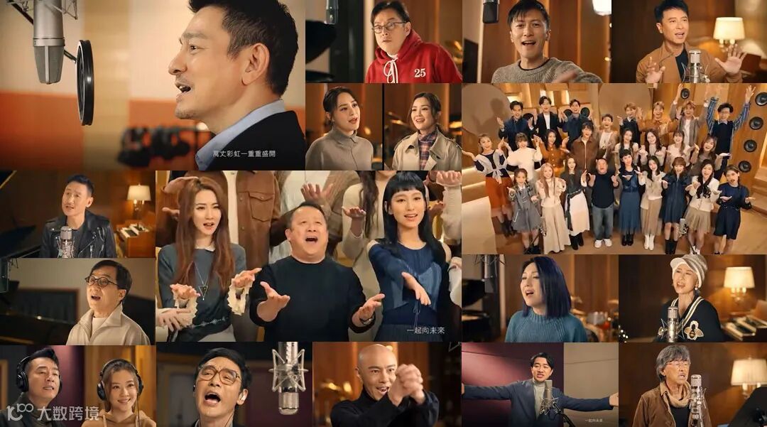 据悉,参与献唱主题曲《一起向未来》的艺人,包括成龙、张学友、曾志伟、刘德华、谭咏麟、李克勤、王祖蓝、林子祥、叶蒨文、杨千嬅、任贤齐、谢霆锋、张智霖、草蜢、钟镇涛、容祖儿、蔡卓妍、钟欣潼、张卫健、吕方、王嘉尔、陈小春、谢天华、梁汉文、林晓峰、杜德伟、甄子丹、应采儿、薛凯琪、Gin Lee李幸倪、泳儿、陈伟霆、Supper Moment、林欣彤、张继聪、区瑞强、许靖韵、Oscar涂毓麟、炎明熹、姚焯菲、钟柔美、詹天文、冼靖峰、何晋乐、林智乐、张驰豪、孙汉霖、HANA菊梓乔、谭嘉仪、谷娅溦、伍富桥、谢东闵、郑俊弘、戴祖仪、施匡翘、胡鸿钧、林二汶、林颖彤、文凯婷、林君莲、潘静文、林沚羿、蔡恺颖等,可以说是巨星云集,阵容鼎盛。