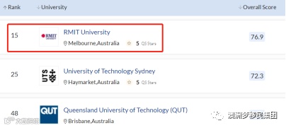 RMIT荣登全澳的第1,世界排名15